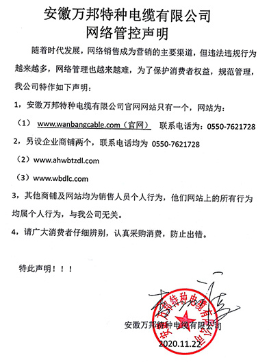 鄭重聲明:安徽萬邦特種電纜有限公司官方網(wǎng)站為:www_wanbangcable_com.sdffp.cn,除此之外無任何子網(wǎng)站或合作網(wǎng)站,其余均為假冒偽劣。電話:0550-7621728 13485756353 地 址:安徽省天長市滁州高新技術(shù)產(chǎn)業(yè)開發(fā)區(qū)經(jīng)四路29號